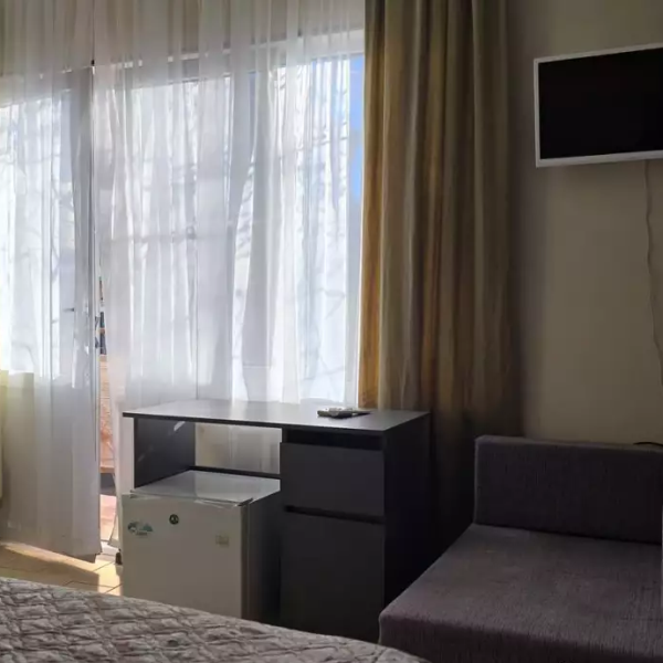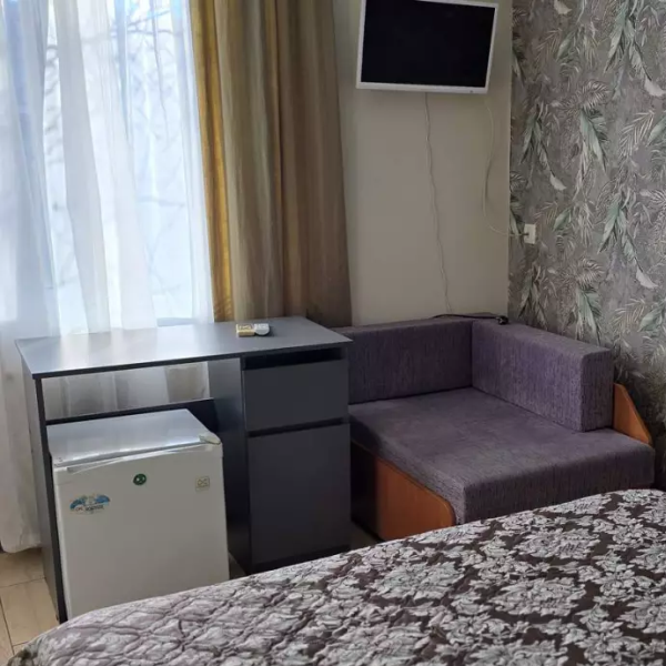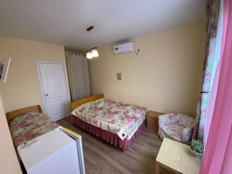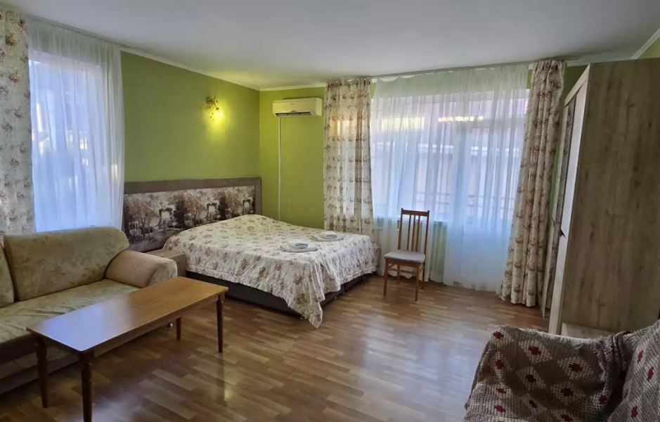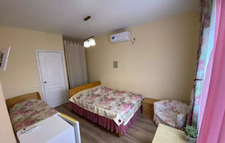 Номера оснащены своими удобствами, мягкая мебель, индивидуальная система кондиционирования, телевидение, Wi-Fi, горячая и холодная вода постоянно. Светлые и просторные номера с балконами, можно подобрать под ваши пожелания. К вашим услугам смена белья, на 5-ый день проживания. А так же трансфер с ж/д вокзала, для наших гостей- бесплатный!